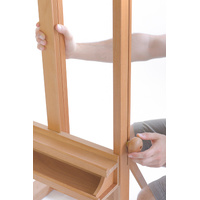 The easel’s smooth rack-and-ratchet height adjustment system, wide double shelf, and stable base deliver both flexibility and security, whether you're working upright or on a recline. It folds down in a single motion for compact storage, making it ideal even for tighter spaces.