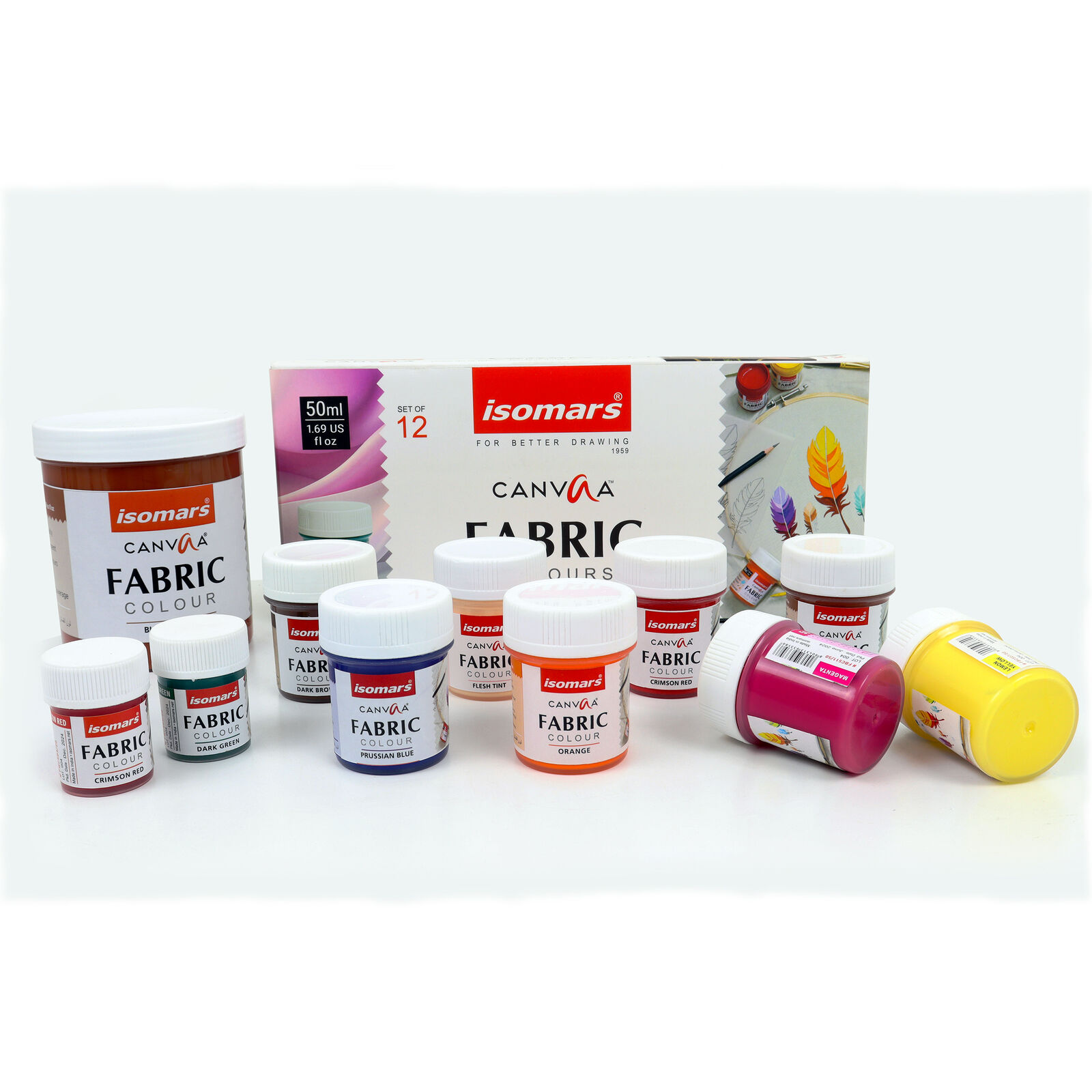 Isomars Canvaa Fabric Colours are high-viscosity, richly pigmented paints designed for smooth application and excellent coverage. These versatile colours blend and layer easily, making them perfect for various surfaces including fabric, canvas, paper, earthenware, and wood.