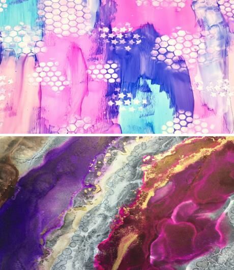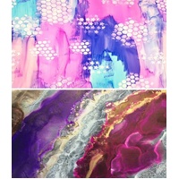 The opaque white surface provides excellent colour clarity and is especially well suited to watercolours, acrylics and alcohol inks, with quick-drying results and crisp effects.