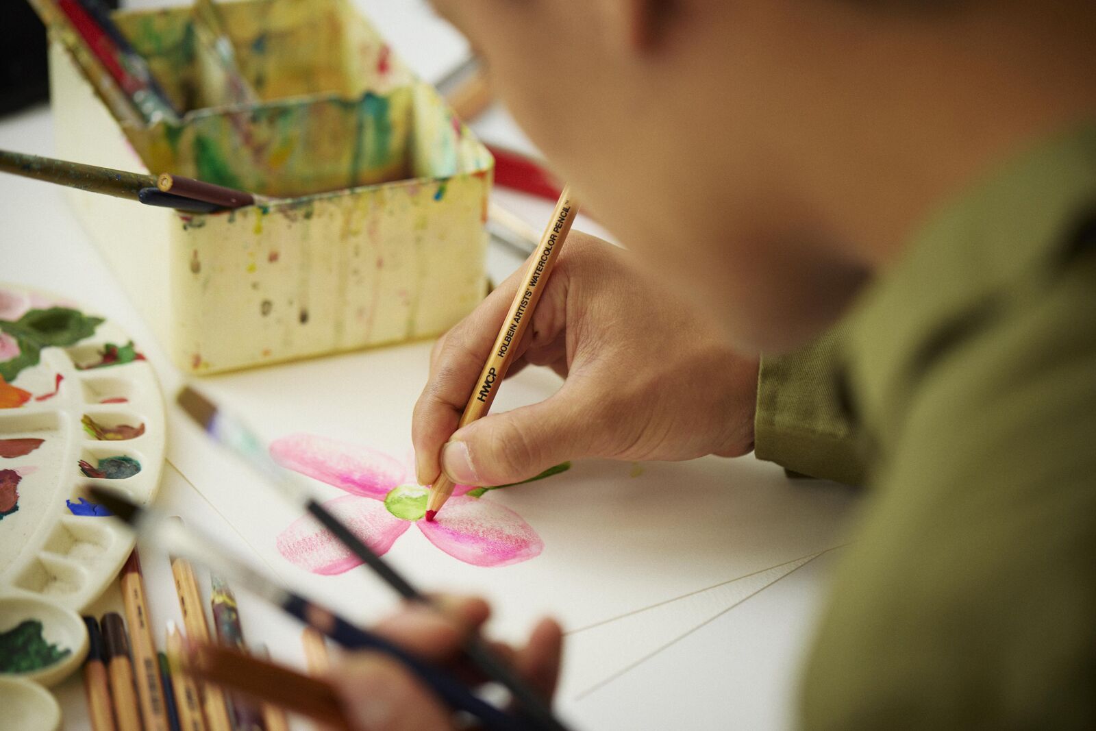 The new Holbein HWCP Watercolor Pencils offer a seamless introduction to watercolour painting with the control and familiarity of a pencil. Designed to pair perfectly with Holbein Artists’ Watercolours (HWC), each pencil is colour-matched by reference number—enabling easy colour identification and integration across mediums.