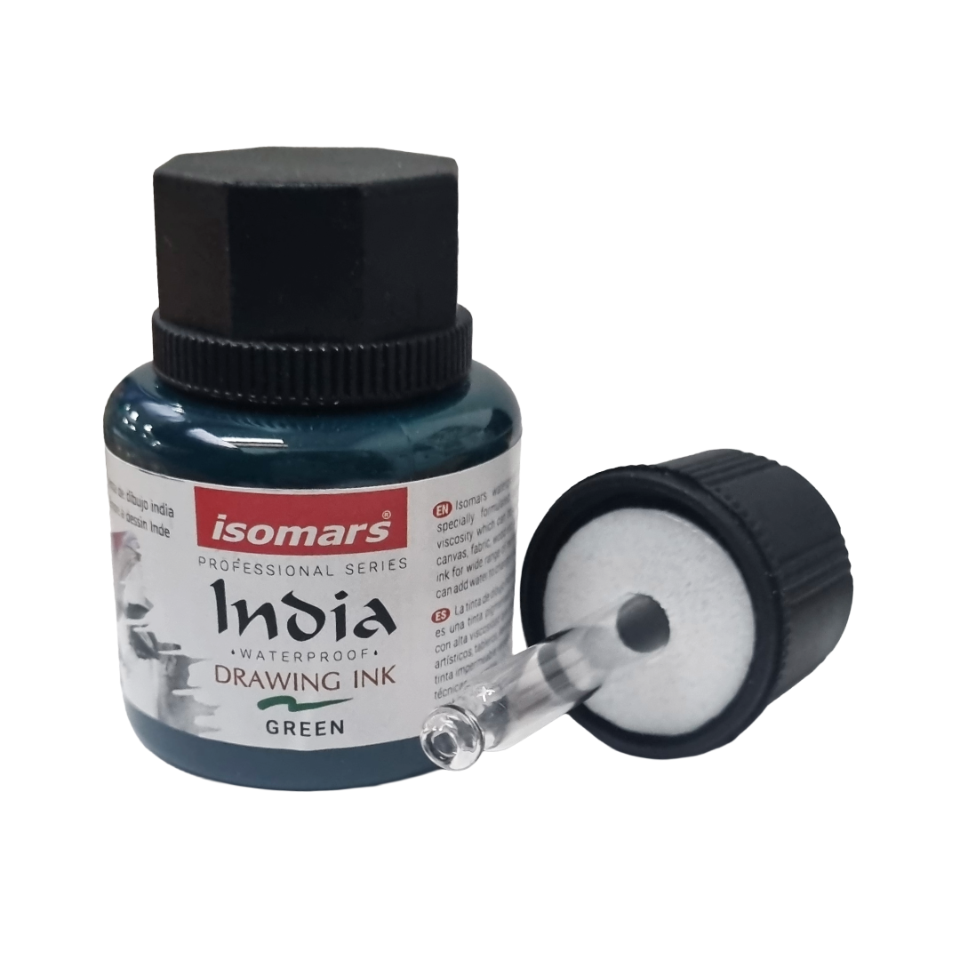 INDIA Waterproof Drawing Ink is a specially formulated, pigmented ink with high viscosity, ideal for a wide range of creative applications. Suitable for use on art paper, boards, canvas, fabric, wood, and more, it offers versatility across various techniques and styles.