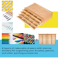 Designed with four wooden drawers, each featuring five compartments, this versatile storage box offers plenty of room for pastel pencils, markers, watercolour pens, small brushes, charcoal, erasers, and more.