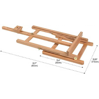 Folds neatly for storage with dimensions of 32.7'' L × 10.8'' W × 2.5'' H. When open, it accommodates canvases up to 22'' tall and doubles as an elegant display stand for finished artworks.